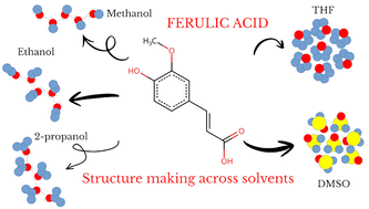 Structure-making solvation of ferulic acid across protic and aprotic solvents: viscosity experiments, simulations, and implications for antioxidant function