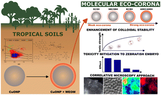 Water-extractable organic matter from tropical soils and biochar amendment tailors the colloidal behavior of nanoparticles and mitigates their toxicity through molecular eco-corona formation