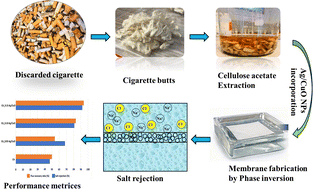 Cigarette butt waste as material for phase inverted cellulose acetate membranes synergistically incorporated with silver/copper oxide (CA-Ag/CuO) for reverse osmosis water treatment